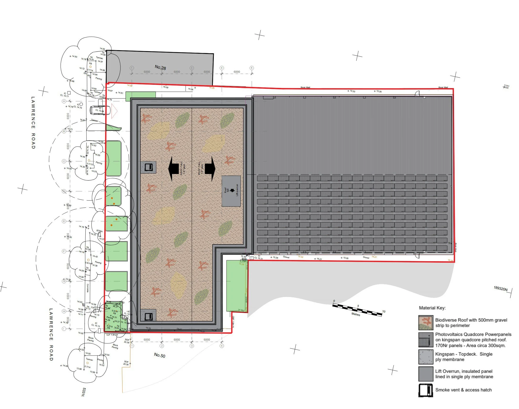 The site is located centrally on the east side of Lawrence Road. The facility is accessed off Lawrence Road through an undercroft to access the external yard to the rear of the site. The addition of the units along Lawrence Road ensures the whole of the public facing site maintains an active frontage to the street at ground floor.